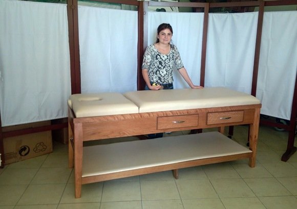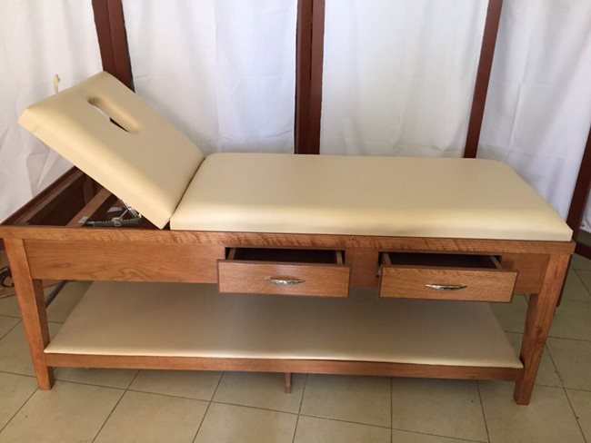 Tamamen ahşaptan üretilmiş olan çekmeceli masaj masasının