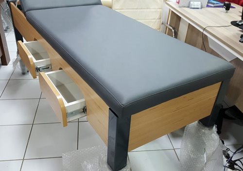 Çift çekmeceli ve baş kısmı ayarlı hareket edebilir muayene divanı istenilen ölçü ve renkte imalatı yapılmaktadır.