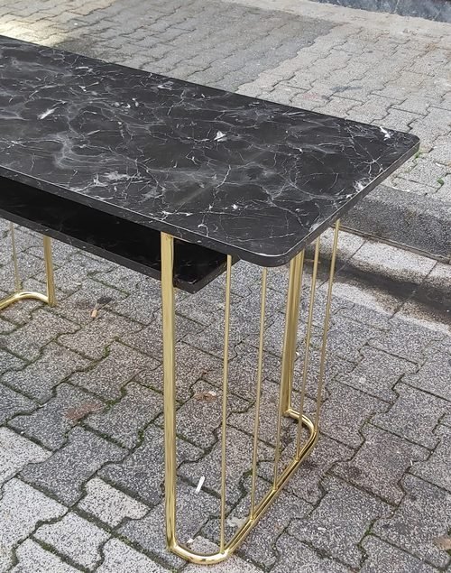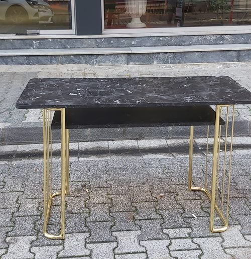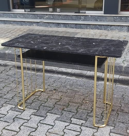 Gold Metal Ayaklı Siyah Mermer Desenli Protez Tırnak Uygulama ve Bakım Masası 05302865343