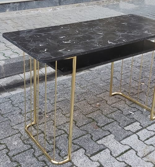 Gold Metal Ayaklı Siyah Mermer Desenli Protez Tırnak Uygulama Masası İstanbul
