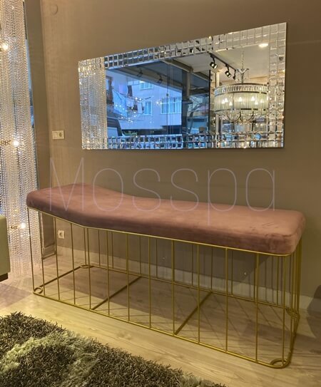 Our decorative stretcher model designed by mosspa for beauty centers made of metal bars. It adds a contemporary look to the space with its gold color paint.