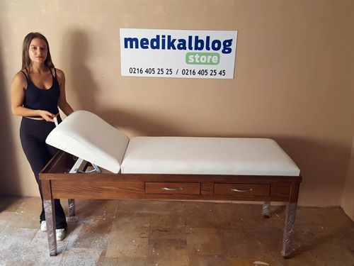 Masif ağaç kullanılarak üretilen muayene masası dayanıklı, uzun ömürlü olarak sağlık kuruluşlarında kullanılmaktadır.