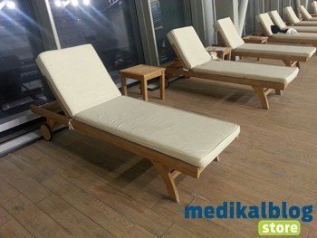 Dış Mekanlarda ise tik ağacından yapılan şezlong kullanılır.